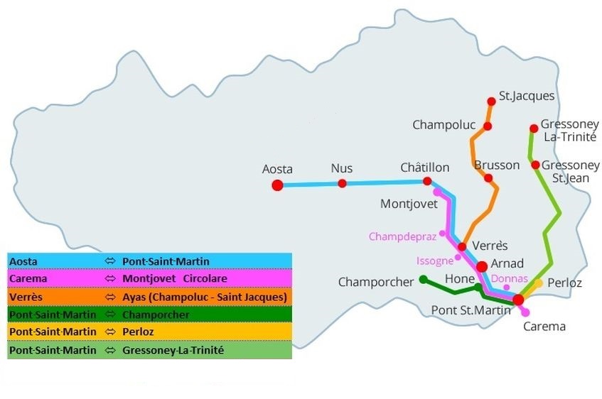 V.I.T.A. S.p.A esercita i servizi di trasporto pubblico locale in Valle d’Aosta rientranti nel sub-bacino BASSA VALLE E AOSTA . Collegamenti rapidi e cadenzati permettono di raggiungere Aosta attraverso tutto il centro valle e le valli laterali di Champoluc-Ayas, Gressoney Champorcher.